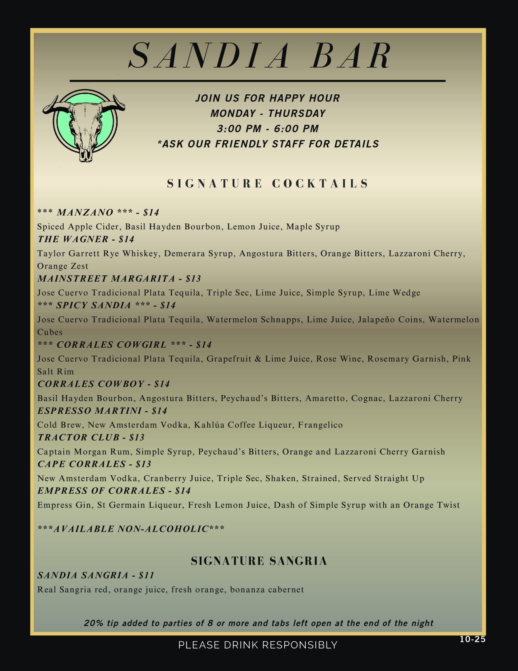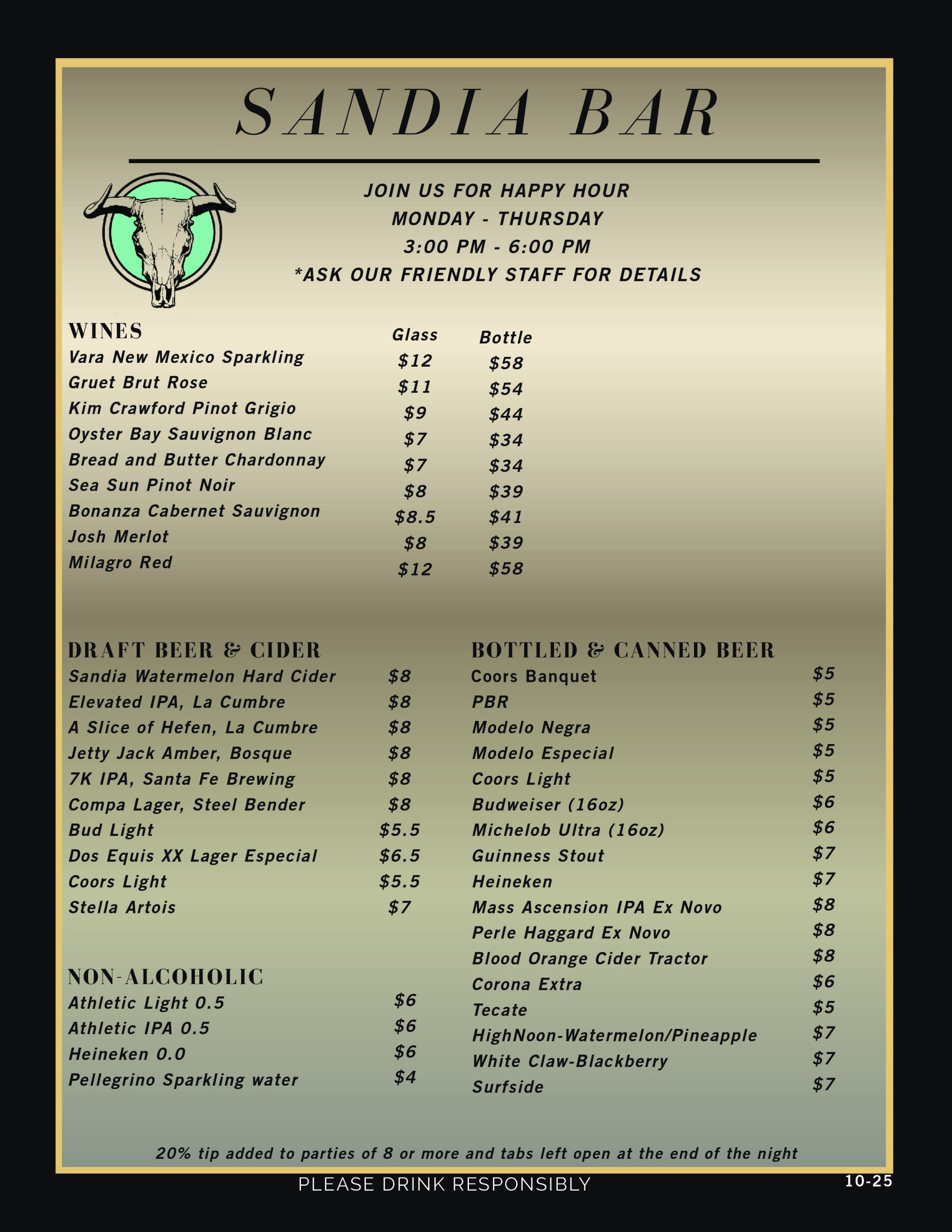 BAR: Mon-Tues 11a-10p, Wed-Thur 11a-11p, Fri-Sat 11a-12p, Sunday 11a-10pRESTAURANT: Mon-Thur: 11a-9p, Fri-Sat: 11a-10p, Sun: 11a-9p
